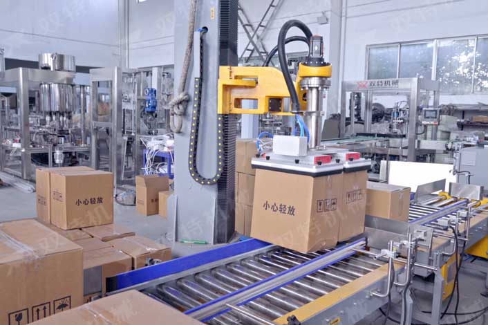 机器人码垛系统主要针对包装线的后道码垛而设计,机器本身占地小,重量轻,功能全面,可以再不同的环境下使用。
